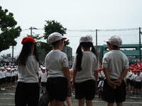 閉会式 暑い中、みんなよく頑張りました! 児童代表の言葉、終わりの言葉も 6年生らしい立派なものでした。 |