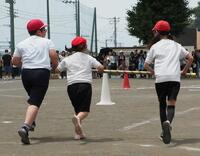 3年生 きずなのデカパンダッシュ デカパンの脱ぎ着に苦戦するペアも ありましたが、ペアの二人で息を あわせて頑張りました! |