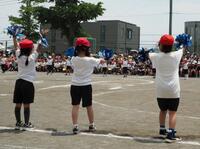 1年生 ダンシング玉入れ かわいい腰振りダンスに会場のみんなも笑顔いっぱいになりました。