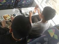 昼食は定番のカレーライスです。 みんなで美味しくいただきました! 食事の後はお楽しみのお土産タイムです。 |