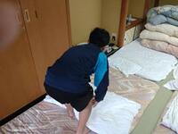 朝起きてまずやることは布団の片づけです。みんなテキパキと取り組んでいました。
