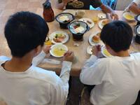 朝食の時間です。みんな元気に楽しく食べました。朝食後は身支度、荷物や部屋の片づけをします。