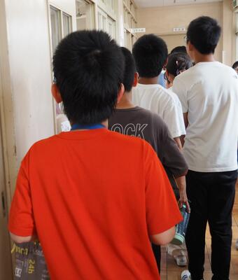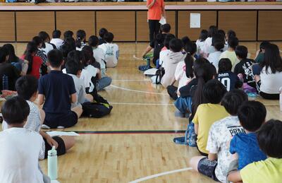 この交流会は、一昨年度開校した施設分離型小中一貫教育校「にのみや学園」のプロジェクトの一環で、年3回(9月、 10月、2月)予定されています。「高学年の児童が進学予定先の中学校に行き、授業参観や部活動体験(見学)をすることで、中学校へ滑らかな進学を図ること」をねらいとしています。