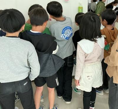給食センターの見学 投稿: 校長 (11:24) 11月4日(水)、2年生が生活科「まちのしせつ」の学習で給食センターの見学に出かけました。給食がどのように作られているのかを、動画やクイズ、質問コーナーや見学を通して学びました。毎日当たり前のようにして食べている給食も、多くの人が力を合わせて作っていることを知り、子どもたちは改めて感謝の気持ちをもったようです。また、一度にたくさんの給食が作られる様子を、目をきらきら輝かせて見ていました。