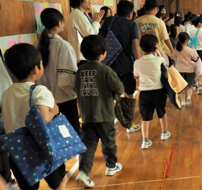 その後、4年生による「終わりの言葉」の後、2年生による鍵盤ハーモニカ「ミッキーマウスマーチ」が流れる中、顔見知りとなった6年生と手をつなぎ、1年生がうれしそうに退場していきました。